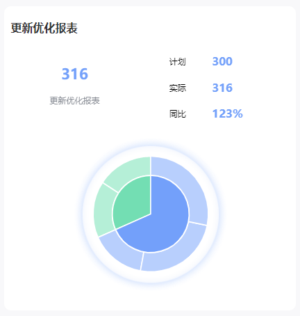 | 多层饼图-简约蓝 | 1.该组件适用于浅色简约风格模板; 2.突出不同分类的占比情况,充分体现两级之间的层级关系。 | ![]() |