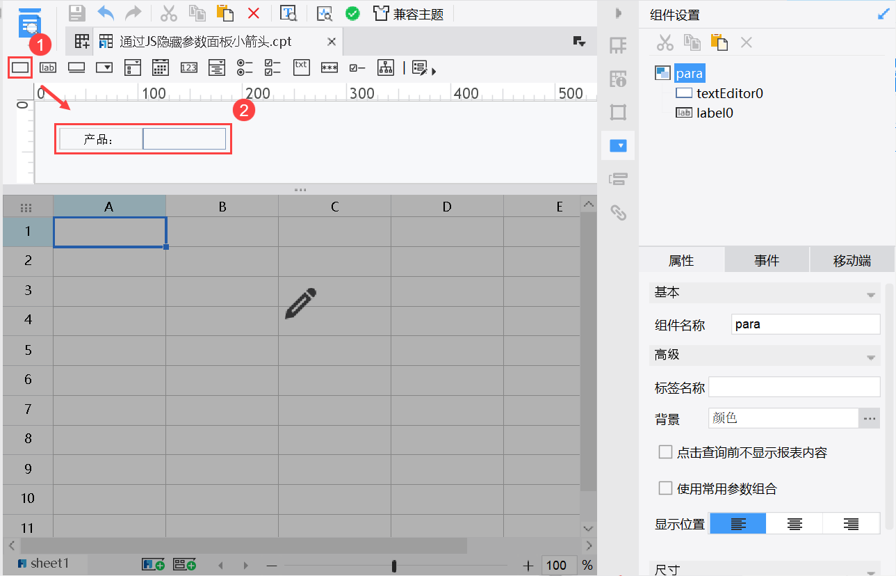 点击下载模板:通过JS隐藏参数面板小箭头.cpt