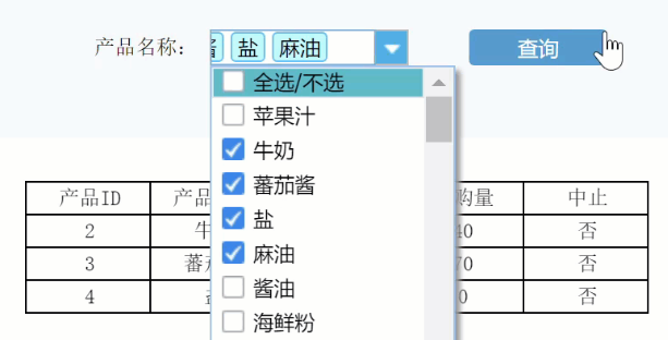| 下拉复选框控件 | 可以有多个值,展开选项后下拉可以选择多个值,一般用于从多个选项中选择几个选项。