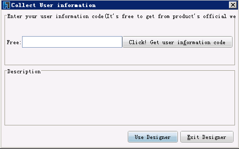 按钮,会跳转到激活码获取页面,留下邮件地址后,用户信息码会自动发送到您的邮箱又或者您可以直接拨打商务电话400-811-8890获取激活码,在上面对话框的单元格里面输入获得的用户信息码,然后点击,按钮,即成功激活设计器。