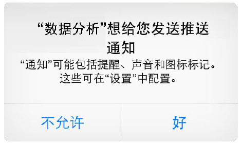 安装或者更新app后,首次打开,提示是否允许发送推送通知,点击“好”则移动端可以接收推送通知: