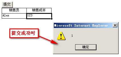 启动服务器,访问jsp页面,输入信息点击提交,若提交成功,则弹出如下对话框