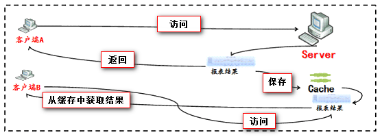 如某报表执行需要5秒中,设置的报表缓存有效时间为10秒,用户A第一次访问该报表时,会将报表结果缓存下来,缓存时间为15秒;