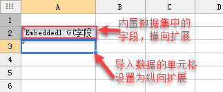 内置数据集准备好之后,将字段名称数据列拖曳到A2单元格中,设置为横向扩展,并将A3单元格设置为纵向扩展,如下图: