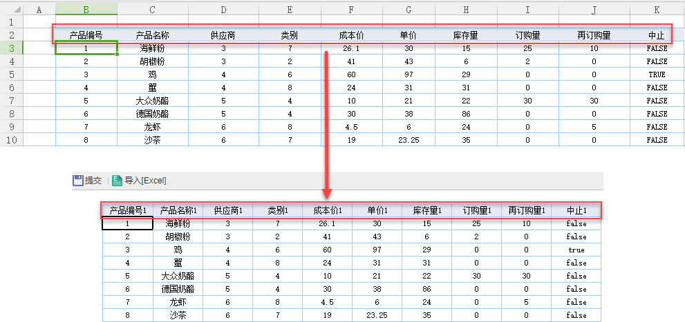 该例中,Excel中的原始数据供应商和类别都是具体的名字,若用户希望Excel导入的是名字,但实际入库的是ID怎么办呢?