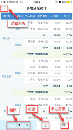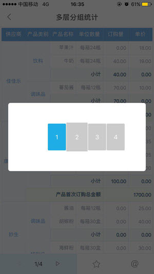 从图中可看到该报表有4页,如果我们需要查看第2页,则需要点击翻页,进入第2页,如下图: