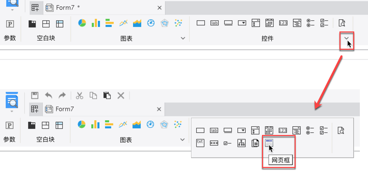 使用网页框控件插件(仅支持网页端,不支持移动端),通过设计器安装后,在决策报表设计界面就可以看到网页框控件了