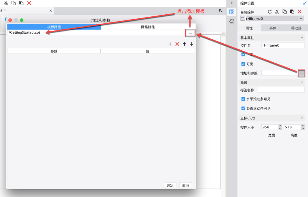 将网页框控件拖拽到决策报表中,点击左侧地址和参数后面的设置按钮,就可以添加url链接了,该网页框控件支持两种类型的链接