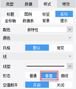 选中图表,在右侧选择样式>系列,线-形态,选择“垂直”,如下图: