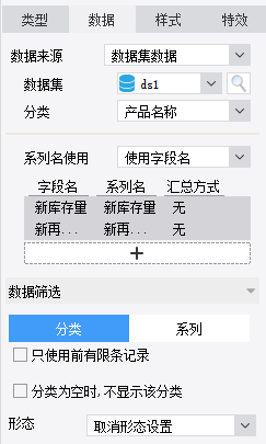 在右侧图表属性表中选择图表属性表-数据,设置如下图: