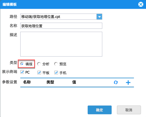可以通过FineReport模板添加一个按钮控件,点击该按钮的时候,获取当前地理位置,并将该位置信息复制给某个单元格,最后员工填报当前模板即可。