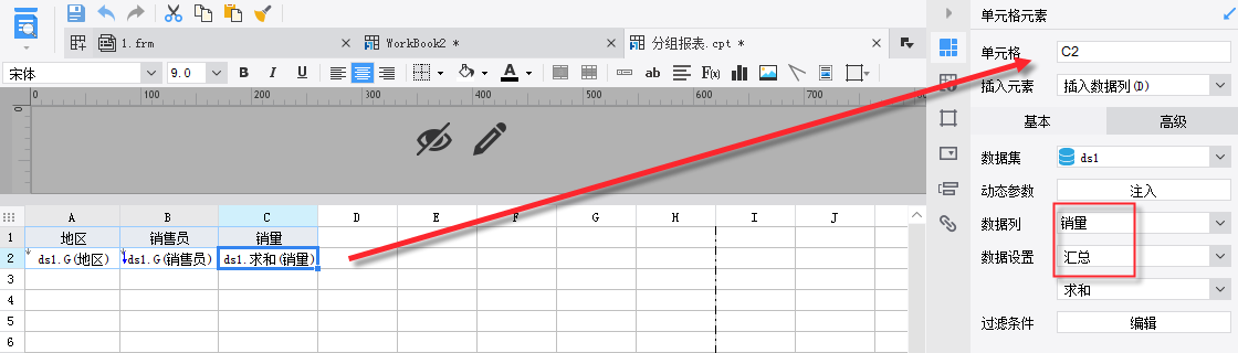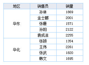 数据列在同一行且来自于同一数据集时,子格会自动将父格作为过滤条件,形成一种附属关系,就如销售员会自动罗列在所属地区下。