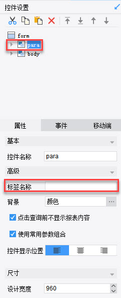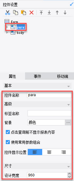 FineReport为了让用户快速的实现参数查询数据功能,提供了专门的参数界面,用来放置与查询相关的控件,并且可以对参数界面进行简单的属性设置。