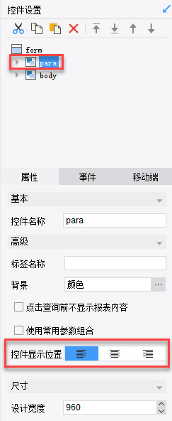 参数界面的显示位置可以设置为靠左、居中以及靠右显示,具体的设置如下图: