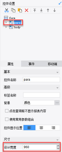 设置参数面板的设计宽度,如下图: