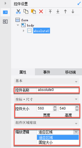 注:这个缩放属性,仅对组件的外围区域大小生效,组件自身内部的缩放,受组件自身的自适应属性控制。比如报表块,在绝对布局内的表块大小,受绝对布局的缩放设置影响,但表块本身内部的单元格展现效果,受表块自己的自适应属性影响。
