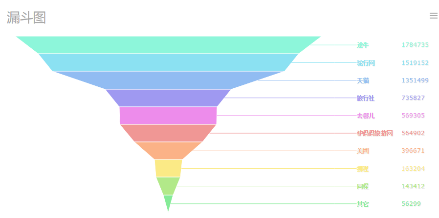 2)不连续,每个色块对应一个数据,每个色块的高度一样,色块上方的宽度与数据(绝对值)成正比。