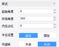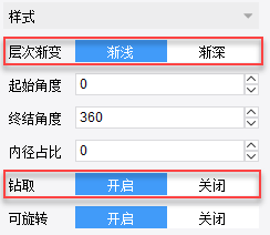 饼图的样式设置不同于柱形图,可定义角度、半径和是否可旋转:
