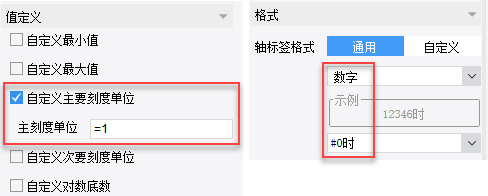 选中图表,点击图表属性表-样式>坐标轴>X轴,类型改成数值坐标轴,值定义和格式如下设置:
