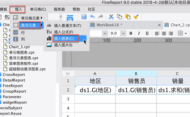 作为悬浮元素插入到报表中的图表,没有单元格的限制,可以固定图表位置,也可以随意拖放到任何位置,大小设置后不会改变,没有父格,不会因为其他单元格的扩展而受影响。