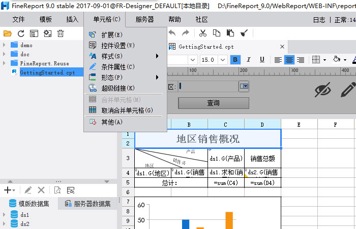 FR:CS设计器设计开发报表模板,用户可任意制作所需要的展示效果。比如满足一定条件单元格展示、前端JS交互、超级链接、图形展示等。