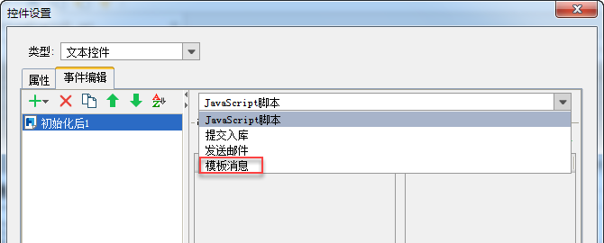 (1)右击单元格,选择控件设置>事件编辑,新增事件中,增加“模板消息”,如下图: