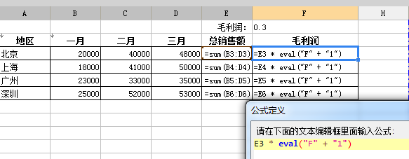 注:由于这里计算公式里F1是通过eval的计算结果,假设这里是填报,比如F1单元格的值是个文本框,值修改之后, G3/G4/G5/G6的计算结果不会动态联动改变的