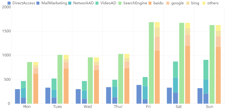 Y轴,堆积属性为是,并添加需要堆积的系列,此示例为设置系列序号为2、3、4的系列为堆积系列二,所以在普通条件中添加(列名:系列序号) 等于 '2' or (列名:系列序号) 等于'3' or (列名:系列序号) 等于 '4'。