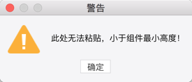 3)如果达到组件最小高度限制时无法再对组件进行等分了,则弹出提示“此处无法粘贴,小于组件最小高度”,如下图: