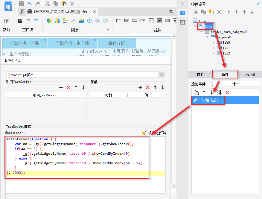 模板效果在线查看请点击:JS实现决策报表tab块轮播.frm