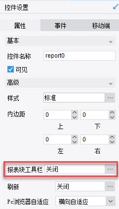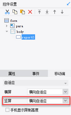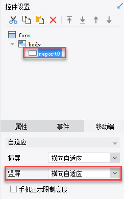 设计完之后需要选中报表块,在移动端中,设置自适应方式为:竖屏横向自适应。