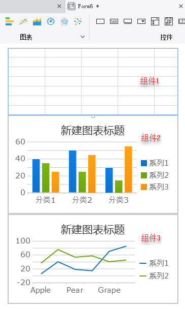 但是有些时候图表数据过多时,也可以使用在报表块中插入图表。