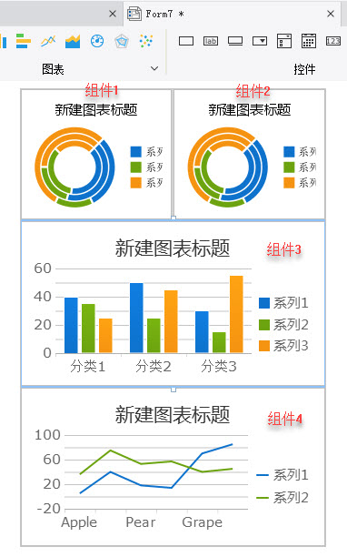 使用图表组件需要考虑适合图表类型的宽高尺寸,例如:饼图、仪表盘适合正方形的区域。