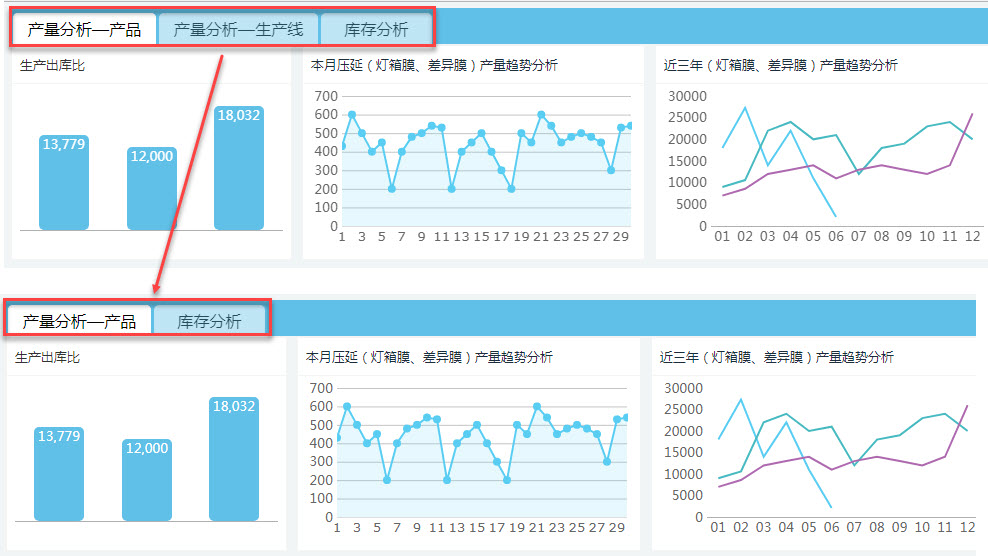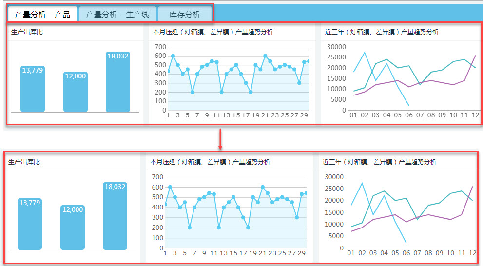 打开模板 %FR_HOME%\WebReport\WEB-INF\reportlets\demo\analytics\financial2\生产库存分析.frm