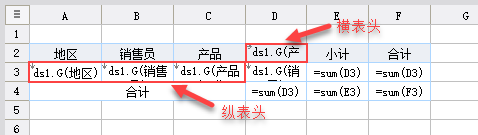 | B3 | ds1 | 销售员 | 数据设置分组并从上到下纵向扩展,其它默认 |