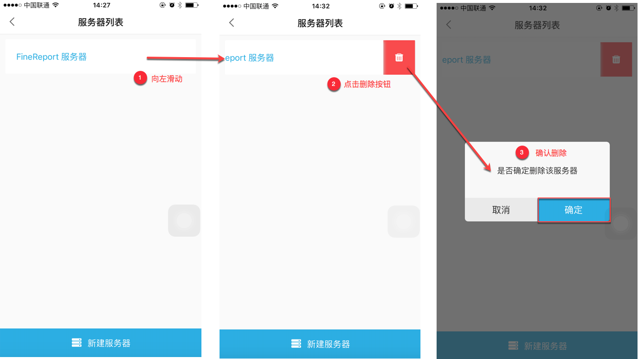 1)9.0里内置的FineReport服务器以及自己添加的服务器,都可以删除