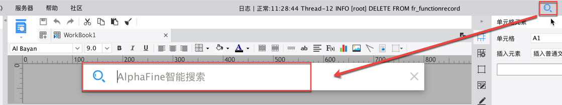 点击右侧的放大镜,在AlphaFine智能搜索框里,输入关键字: