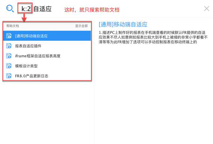 联网:是否联网搜索,默认勾选,若不勾选,则不搜索猜你喜欢、帮助文档和帆软市场