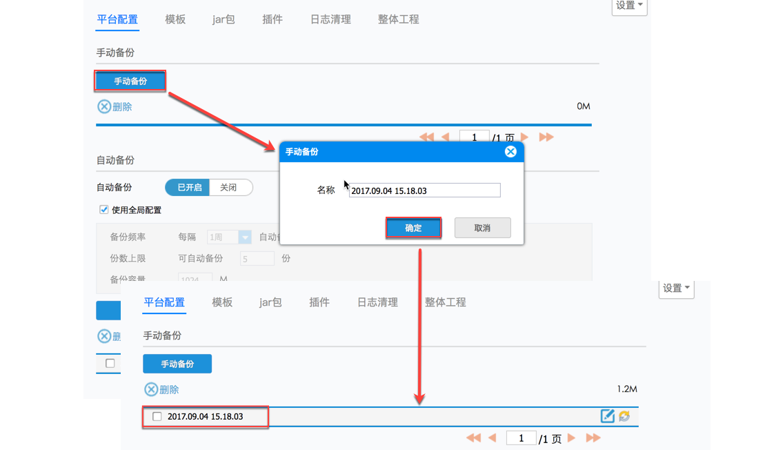 点击【手动备份】,弹出对话框,可自定义名称,点击【确定】,这样手动备份就完成了,如下图: