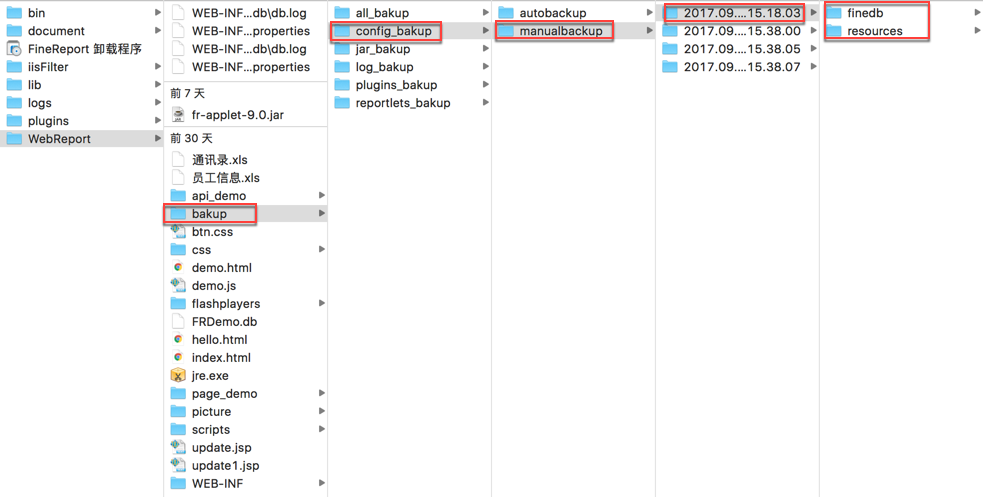 这里以平台配置举例,备份的文件在%FR_HOME%/backup/config_bakup下
