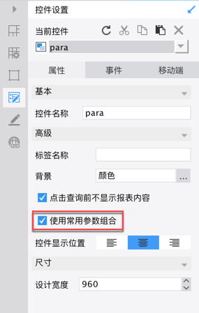 进入参数面板的编辑状态,在属性面板中勾选“使用常用参数组合”,如下图: