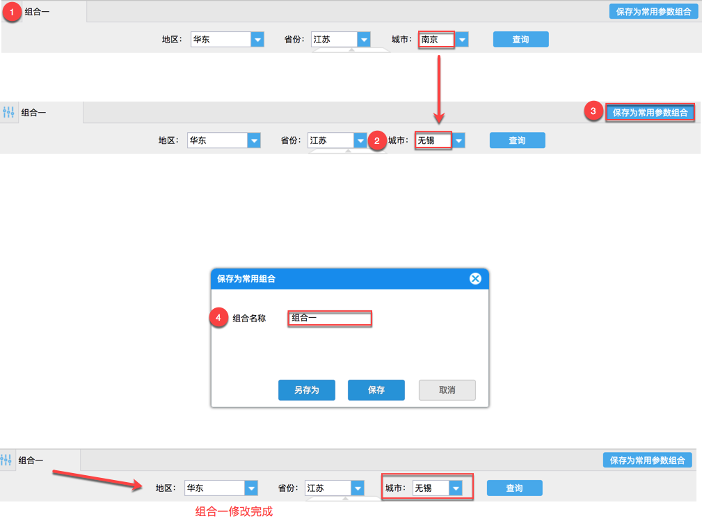 选中“组合一”,将城市修改为无锡,点击【保存为常用参数组合】,弹出对话框,点击【保存】即可,如下图: