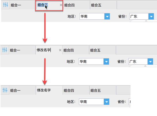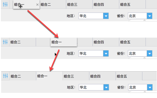 鼠标选中组合一,拖动到组合二和组合三中间,松开鼠标,这样组合一就移动到了组合二、三的中间,如下图: