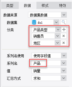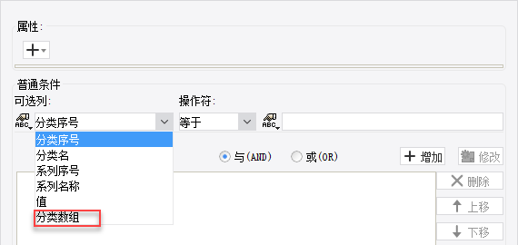 2)多分类轴时,条件属性中配置'分类名称'=xxx时,该分类名称指的是最底层分类值。