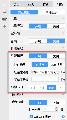 当x轴类型设置为值轴或者时间轴类型时,分类数据设置处,除了第一层分类,其余分类的下拉框灰化,不可使用多分类轴(删除按钮扔可用)