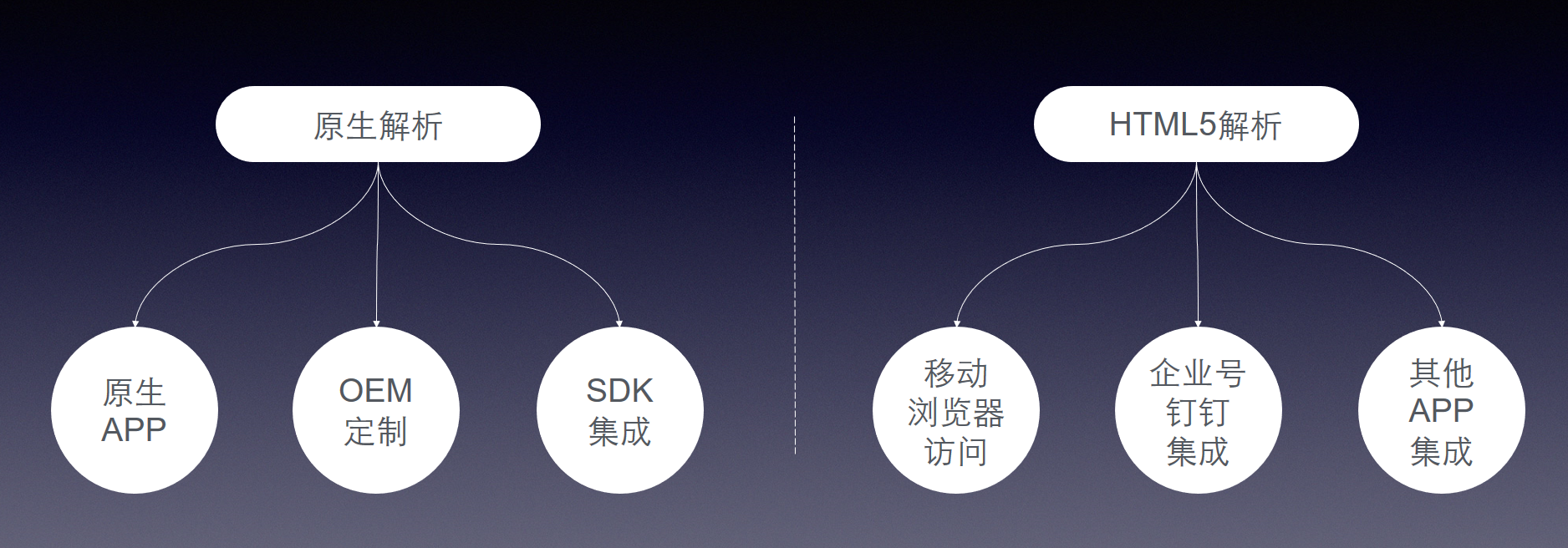 原生解析:提供“数据分析”APP(下载方式),支持Phone、PAD两类终端,IOS、Android两种系统,同时支持OEM定制,以及通过SDK的方式集成到其他APP中;