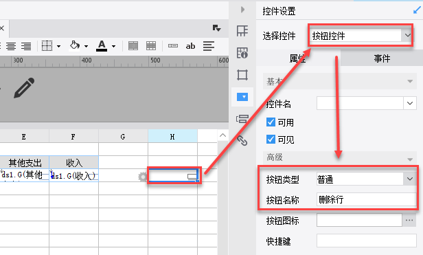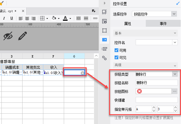 contentPane.deleteReportRow("G"+row, 0, 1) //字母G为内置的删除按钮所在列