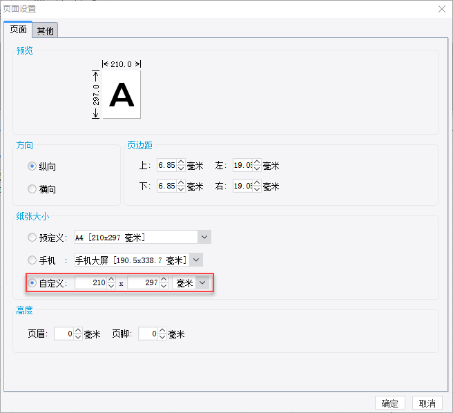 点击模板>页面设置>页面>纸张大小,设置合适的高度。选择自定义,修改自定义的大小即可,默认为A4大小。如下图: