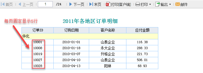 下面在按组分页模板的基础上实现每页固定显示5行的效果,分页报表,每页固定显示行数。