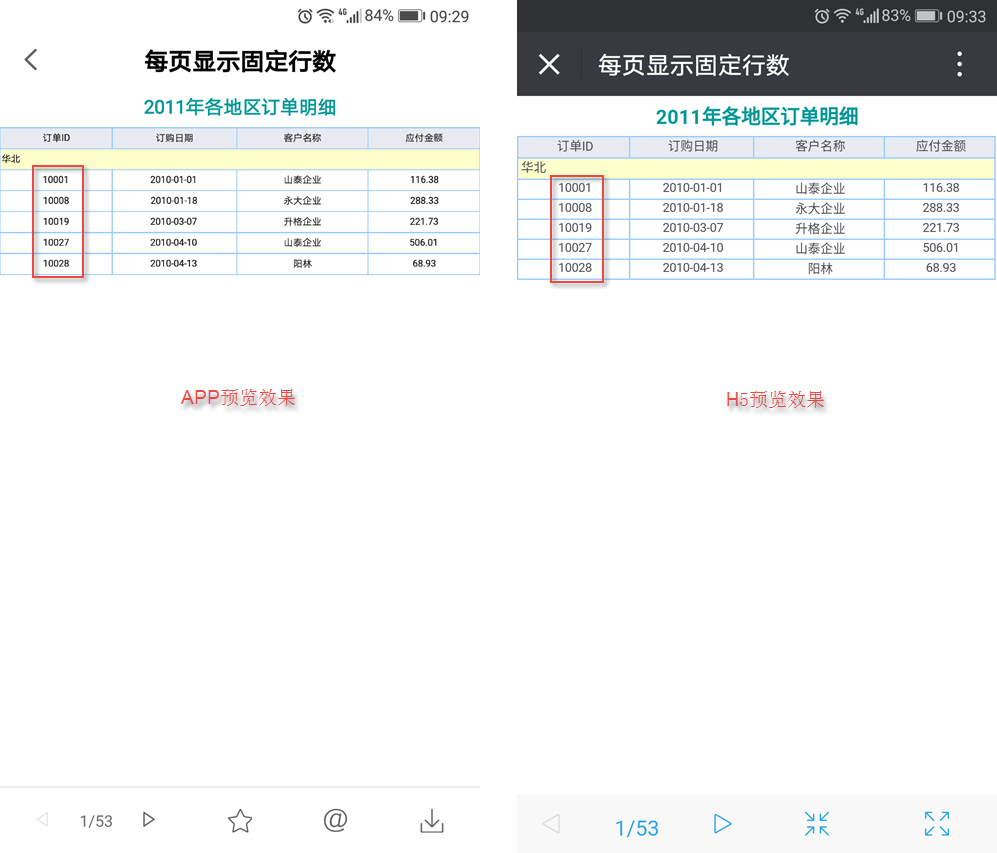 &A5为每组中订单ID的序号,此条件属性的作用就是在每组地区下,订单序号为5的整数倍的时候行后分页,即每5行分页。